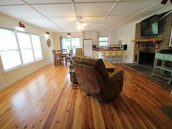This property is a nature lover or fisherman's paradise, located on Turkey Branch, an inlet of Fish River in Fairhope, AL. The property features a boardwalk leading from the house to the boat dock, complete with a 1000 lb boat lift and 2nd boat slip. Fairhope School District as well. Great Location! This home features an open floor plan with breath taking views of Turkey Branch from the kitchen and dining areas. You'll find beautiful, refinished heart pine flooring throughout and a wood-burning fireplace in the living room. The property has a fenced in area, a deck with outside shower, and a boathouse under the house that can house a boat 9' wide x 29' long.