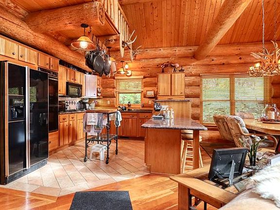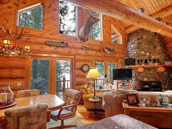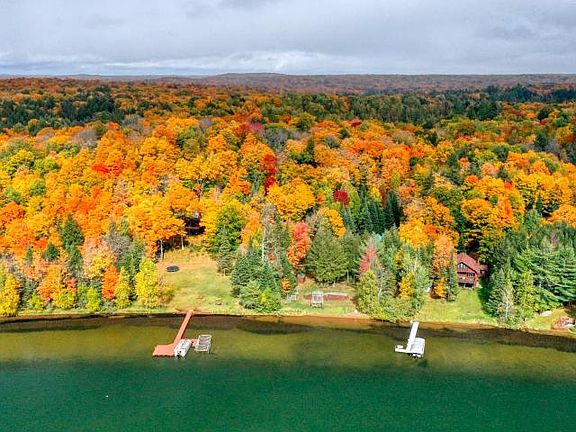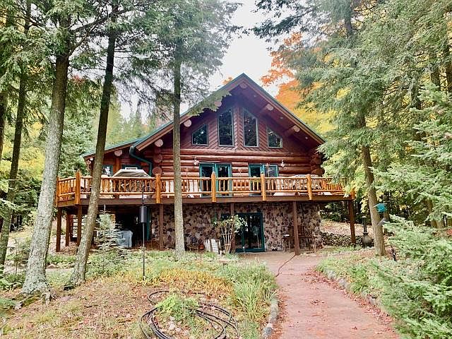 Full log luxury on the Northwoods finest lake. Butternut Lake is almost 1300 acres and over 75% of the lake is Nicolet National Forest. The 3+ bedroom, 3 bath home is in impeccable condition. It was built in 2001 by Ojibwa Builders and is full horizontal log and offers 2800 Sq. Ft. 100' of perfect south facing sugar sand frontage awaits you. The elevation is level and the views are extraordinary. Some features include cherry floors and cabinets, granite counters, walk-in shower, whirlpool, sauna, a second kitchen in the lower level, a magnificent wood-burning stone fireplace, lake side deck, sun room and fully finished walkout lower level. There is also a detached 2+ car garage. The landscaping is terrific as well. The home was stained in 2020 and there is a metal roof. The home is being offered turnkey. Almost all furnishings and the pier (a gorgeous new Porta Dock) are included! This is one exceptional home and it is on an extraordinary spot and lake!