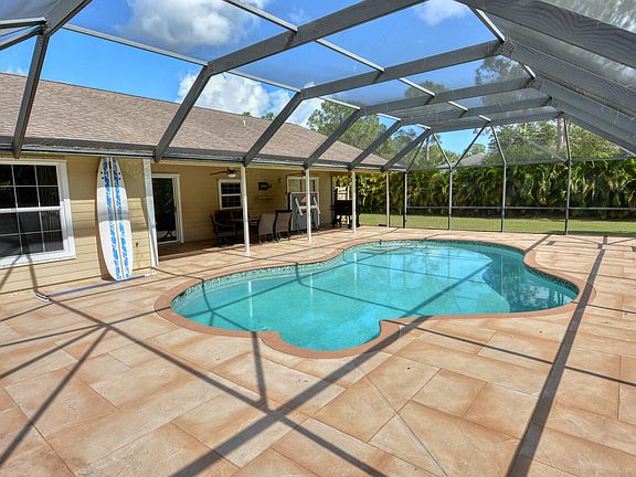 Great Opportunity to own a Pool Home in Desirable Jupiter Farms!3BED/2BA/2CAR GARAGE + 20x24 2015 Shed/Workshop +In Ground Screened Saltwater POOL! Pool Resurfaced 2021 with new pavers! A/C New 2020 Ductwork replaced 2021!New Stainless Appliances 2019!Laminate Wood Floor through out !Kitchen with Oak cabinets and granite and Stainless Appliances! Gorgeous 1.25 Acres completely fenced! 12x10 Shed and Swing Set stays! Come and see it will not last!