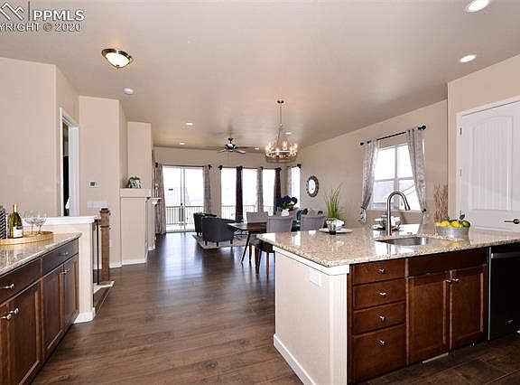 Why wait to build? This wonderful "Celebration Model" built by Classic Homes is truly "Move-in-Ready." The Celebration is an Open Floor Plan Concept, where the Kitchen, Dining nook and Great Room come together in True Harmony. Ample seating areas and the large Kitchen Island create the ideal setting for Family Gatherings. So much natural light shines through the wall of windows along the Family Room, with a sliding door for easy access to the backyard & Covered Patio which make indoor/outdoor Entertaining Easy. Built in 2018, a Family-Style Living Space offers over 3,000 sq. ft. with a fully Finished Basement featuring 1ft Taller ceilings and wet bar rough-in.Features Include: Master on the Main, 4 Bedrooms, 3 Bathrooms, a 3-Car Tandem garage, Gorgeous Front & Rear Landscape with Water feature, Window Treatments, Sprinkler System, Custom interior Painted Walls, Stone Feature Fireplace, Stainless Steel Appliances, Granite counter tops, Luxury Wood Laminate Floors, Ceiling Fan in Master & Living Room, Air Conditioning, Security System, Extra Storage Room in the basement.. and Much Much More..Close to Schools, Restaurants, Shopping with Easy access to Powers and 1-25!