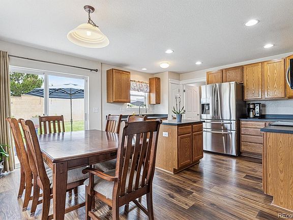 Welcome Home to this Beautiful 3 bed+loft, 3 bath Charming Belle Creek Home! From the large, lovely covered front porch you can enjoy the park right across the street! This home boasts an open-concept design, the spacious living area seamlessly flows into the well-equipped, sunlit kitchen featuring double ovens, stainless Samsung appliances (2017), deep stainless steel deep single basin sink and a pantry! Large windows allow ample natural light to fill the home, highlighting the upgraded gorgeous vinyl planking flooring throughout the main level. There is a half bath conveniently located on the main floor as well! You will enjoy the large loft at the top of the stairs and a linen closet. The master suite comes complete with a walk-in closet and an en-suite bathroom. The remaining two bedrooms feature generous closet space and share a full bathroom double sink bathroom. Outdoor amenities include a well-maintained, professionally landscaped yard, a large patio perfect for entertaining, and a one-car attached garage. The unfinished basement is ready for your unique touches. The solar system is owned and generates 4.8 MWH a year and will lower utility bills! There is also a water filter and softener system included. This wonderful home is in close proximity to a local convenience shop, yoga studio, rent to work space, schools, and parks, this property is an ideal choice for anyone seeking a convenient location. Belle Creek Neighborhood offers a Community/Fitness Center which is free to residents and has a basketball court, Yoga, Preschool and Charter School. They host food trucks, movie in the park, community yard sales, and holiday decorating contests. They do events for National Night Out, Halloween, Christmas, 4th of July, Community Clean Up, etc, this is truly a wonderful community. Convenient access to I-76, DIA & Downtown Denver.
