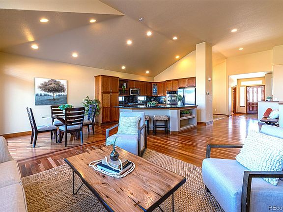 Updated Ranch Style Patio Home In The Heart of Desirable Songbird Gated Community! The open floor plan and hardwood floors creates an inviting atmosphere. The great room with vaulted ceilings and gas fireplace is perfect place to relax or entertain. You will appreciate the eat-in kitchen, equipped with large island, double ovens, gas stove, and granite countertops. Enjoy the formal dining room space with family or guest. The Primary suite is a retreat with a beautiful remodeled full bath and walk-in closet. The main floor is complete with a dedicated office space, 2nd bedroom with walk-in closet plus an updated guest bath with quartz counters. Simplify your life with a main floor laundry room equipped with a washer, dryer, utility sink, and cabinets. The finished basement adds extra living space and ample storage space including a family room and wet bar. The two additional bedrooms with egress windows and walk-in closets are perfect for guests or family members seeking a bit of extra privacy. Step outside and enjoy the patio and fenced yard backing to greenbelt and walking path. This home is designed for low-maintenance living and is perfect for the lock and go lifestyle, allowing you to spend more time doing the things you love. Bonus is the south facing driveway, structural engineered basement floor system, newer hot water heater, and replaced egress windows. Explore nearby parks, enjoy a round of golf at the Meadows Golf Course, or stay active at the Foothills Rec Center – this home puts you in the heart of nature and recreation. Wonderful place to call home!