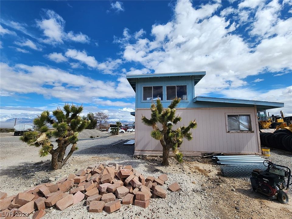 2.3 miles from the I-15 Kyle Canyon Road exit, this property is on the left. 4.5 acres with a Kyle Canyon Road Address! There are several buildings, all under 600 sqft. Owner occupies a one bedroom manufactured home converted into real property (under 600 sqft) with a den. There is a detached garage, a bunker, and several storage buildings. Property has power and a private well. Do not show up without an appointment. All showings MUST BE scheduled.
