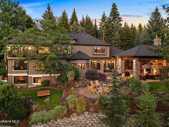 A gorgeously detailed custom finished 5,500+ square foot home is quietly tucked into the evergreens, yet just minutes to Hayden & Coeur d' Alene, and includes ample parking with a 30' x 30' shop.