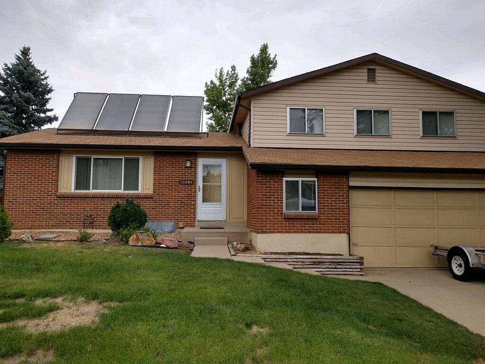 A nicely updated 1650 sqft tri-level house with a basement for storage. This house has 3 bedrooms, 2.5 baths, and a large two car garage with a shop. The kitchen has been updated with all appliances plus a laundry room to fit your washer and dryer. There is a large living room and dining room on the main floor just off the kitchen and a large family room/den with fire-place on the lower level. It has a large fenced in yard, that is dog friendly with a pet deposit. The house is located just on the Broomfield/Westminster border at basically 112th and Main/Pierce in the Sheridan Green Sub-divsion. It is walking distance to the Westminster Promenade and several open areas with walking paths and trails. The house will be ready to move in August 30th. Non-smoking house and no cats allowed. Rent is $2950 a month with a $2950 deposit. I will be showing the house this Saturday August 16th from 3:00-5:00pm by appointment only. Elementary School = Sheridan Green, Junior High = Mandalay, High School = Standley Lake. Renters are responsible for all utilities, trash service, water, and TV/cable