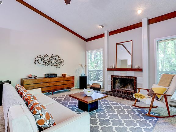 Beautiful mid century ranch w/ 825 sf wrap around deck and Ewok Village treehouses. Nestled on a quiet corner lot with nearly 1/3 acre. Impeccably remodeled kitchen/bath, new carpet, gleaming hardwoods, quartz counter, white cabinets. Expansive bright, open floor plan w/ vaulted ceilings, window seats, gorgeous wood details. Master suite-double closet, bathroom. RV Parking, fenced yard. Easy access to 26/217, Nike, Cedar Hills Crossing.