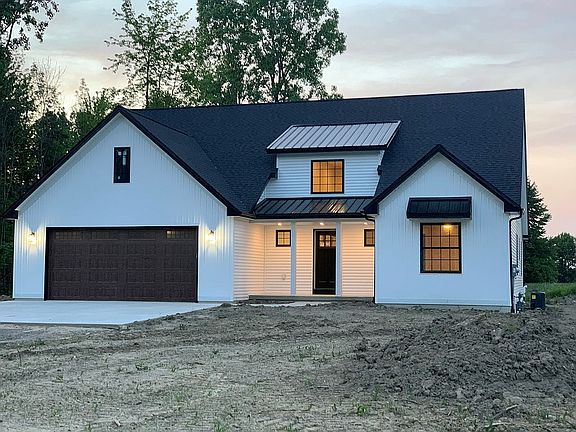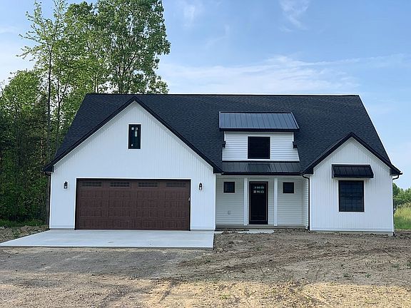 This newly constructed home located on a paved road in the Village of Emmett will not disappoint. It's a cozy 1,870 sq. ft. ranch that sits on a 2 Acre lot with beautiful scenic views. Important Facts: full basement with precast concrete walls (insulated with metal studs) energy efficient natural gas furnace, gas water heater, water softener, sewer, air conditioning, Anderson windows throughout, foam insulation, master bedroom with cathedral ceilings, walk-in shower and closet, large kitchen island with quartz countertops accompanied by a walk-in pantry, laminate wood plank flooring throughout, carpeting in bedrooms, marble countertops in kitchen, cathedral ceiling in living room with recessed can lighting, 16 ft ceilings in the entry way and covered patio off the back of the house to enjoy the views. This beautiful home won't last long, call now to schedule a private viewing.
