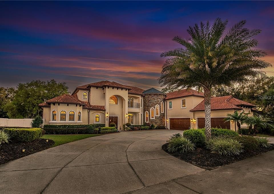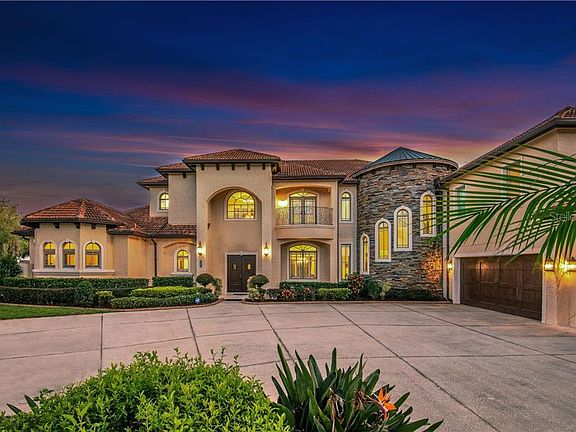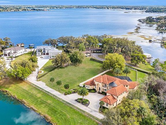Mediterranean custom built home, is located on a private street within the Windermere city limits, sited over one acre, boasts 5, 815 square feet of elegant living space with 7 bedrooms and 7 full bathrooms, 4500 square feet of screen enclosed, lighted and paved outdoor space,featuring a large covered lanai, a large pool, summer kitchen, gas fireplace and espetacular views of Lake Down, ideal for entertaining. The many interior features includes 24" marble floors, pillars, hardwood paneling ceiling in kitchen and formal dining room, spiraling marble and wood stairway with iron railings, 2 custom murals hand painted by Disney artist, wine cellar with engraved copper door, 8' doors and, plantation shutters.The abundance of double insulated glass windows, doors, sliders and the 30 ft ceilings in the family and living room provides plenty of natural light throughout the home, opens up to a coffee bar and kitchen with large island, stainless steel appliances, walk in pantry, and breakfast nook. The main floor master suite features a fireplace and double doors to the pool, a master bath with "car wash" shower, dual vanities, separate jetted tub, his and hers walk in closets. The 2nd floor boasts the additional Master bedroom that can be converted into a game room/media room or in-law suite. The 3 additional en suite bedrooms offer spectacular lake and natural views from 2 outdoor balconies. Lots of storage throughout in addition to a 5 car garage. Fast and easy access to the Freeways! NO HOA!