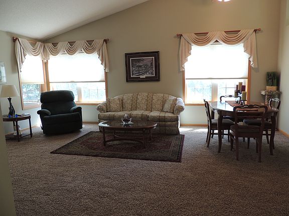 Enjoy CAREFREE lake living! Private owners lodge, beach to swim, boat and great fishing on Green Lake! End+corner 1 level unit. 2 car attached garage. Former model, prof decorated,custom window treatments, hardwood floors in large eat in kitchen with newer stove, fridge and dishwasher. Newer roof, furnace. Beautiful gas fireplace with marble surround enjoyed from the open concept vaulted living room/dining room. Up north feel to cozy sun room.Huge master with walk in closet and walk thru to beautiful full bath with separate tub,. shower and a sun tube. Enjoy beautiful sunsets over Green Lake and the pond just out the front door! Wheel chair accessible. Move in ready!