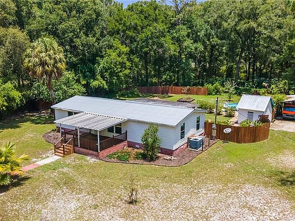 Charming 3 Bed/2 Bath Double Wide Pool Home nestled on 1.25 acres. Peaceful - Country living located just minutes to schools, shopping, restaurants, medical, parks and recreation. Open split floor plan, cathedral ceiling, and laminate flooring throughout. Great room w/built-in wall unit and custom built-in aquarium. Bathrooms offer sleek, updated tile showers, vanities, and fixtures. Contemporary Kitchen with high gloss acrylic cabinets, freestanding island, and pantry. Inside laundry room. Enclosed rear porch w/wet bar overlooking the pool, and large private yard with plenty of space for the family and farm animals. Metal Roof; HVAC 2013; Carport, Vinyl Fence, and Shed 2011; Drainfield and Well Pump 2016. NO HOA, NO Deed Restrictions, NO Flood Zone!