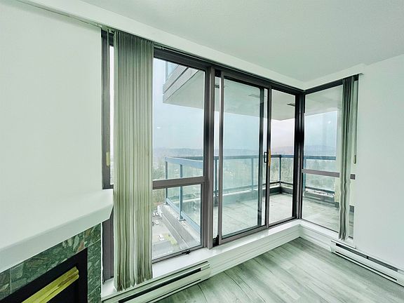 Welcome to the 17th floor of The Observatory. Perfect starter home for first time buyers or investors with grand city, mountains and Fraser River views. Brand new appliances, paint and laminate floors. Cozy living room with gas fireplace. Natural lighting through floor-to-ceiling windows and patio doors. Bird's eye views from large balcony, living room, kitchen and bedroom. Low strata fee includes gas and hot water. Cats and dogs welcome! Amenities include a guest suite, fitness centre, recreation room, whirlpool and sauna. Steps to Gateway Skytrain Station, Chuck Bailey Recreation Centre, Whalley Athletic Park & Stadium, Tom Binnie Park, and minutes to dining, shopping, schools and Hwy 1. Storage locker included. Parking stall available for $60/month. Open house on Sunday March 12 2-4PM.