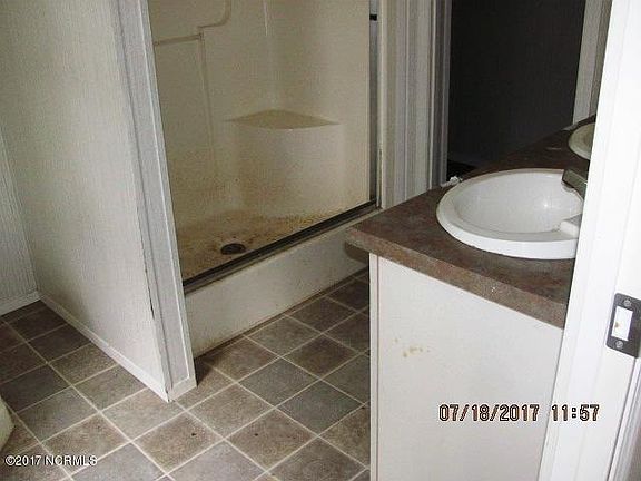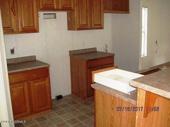 Small town living, but still convenient to Jacksonville and Camp Lejeune. Three bed/two bath manufactured home. No thru-traffic on dead-end road. Kitchen has breakfast bar. Master suite has corner tub, walk-in shower and double vanity. Needs updates, HVAC, etc. but has nice potential. Sold as is. VA recommends buyer obtains title insurance.