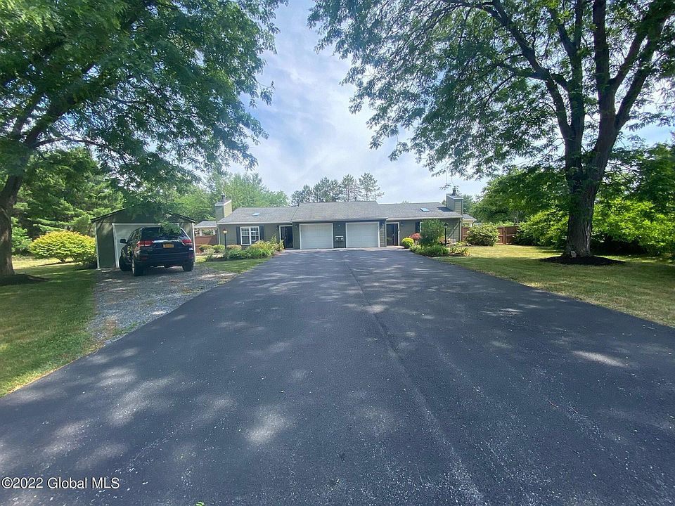 Both sides rented. Unique 2 family Ranch style duplex in the Guilderland school district. 10 minutes from Crossgates mall. $70k in ugrades including adding det garage to owners side. ($20K) converted to wood to gas fireplace ($12k) in homeowers unit & gas oven. Both sides have their own entertainment areas w/ stamped concete & covered pergolas. Homeower side has above ground pool w/ trex deck. Complete list of all the upgrades are being put together now. Both units newer flooring-mostly freshly painted. Both kitchen & baths updated with granite & backsplash, etc. Updated electric. Loads of professional landscaping. Driveway is deep & triple wide. Homeower side also has garage out back & attached garage was converted to half storage/ half office.