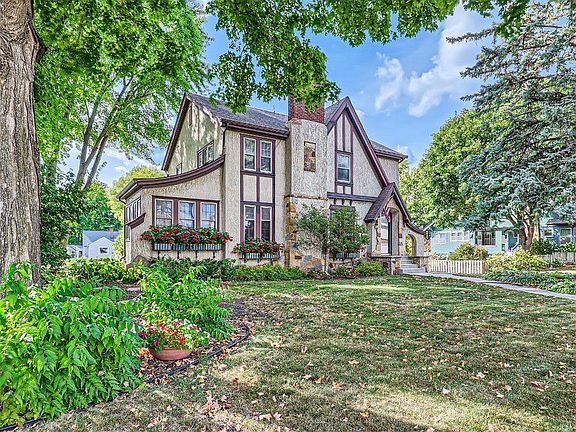 Old World Charm! Well cared for and loved home. First time available in 45 years (only 3 owners of this beautiful home). You'll love the character both inside & out! Outside you will fall in the love with the charm & larger lot w/ nice landscaping. Inside you will find more charm - Nice formal dining room, large living room w wood burning frplc, 2 sunrooms, nice size kitchen w/ stainless steel appliances, main floor 1/2 bath. Upstairs you have 4 spacious bedrooms - all with walk-in closets & the full bath. The lower level has a finished family room w/ frplc and lots of storage or office/craft/workshop areas. The antique lover will appreciate the original light fixtures, the built-in corner hutches, the original woodwork, the old telephone nook +++ Hardwood floors are under all the carpeted areas except the West sunroom. Nice 2 car detached garage w/ attached workshop or garden area + another shed for extra space. Short walk to downtown & park!
