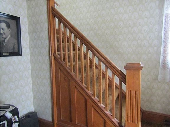 Tons of potential on this 2 Story home which features beautiful original woodwork with built-ins and pocket doors. 3 bedrooms, dining room, large walk up attic (partially finished for 4th bedroom, game room, storage), detached oversized 1 car garage (dirt floor, water line ran to garage ready for hook up), vinyl siding some updated windows, relax and enjoy summer on the enclosed glass front porch or on the covered patio area, partially finished area in basement, Bonus room off kitchen great for office/laundry room.
