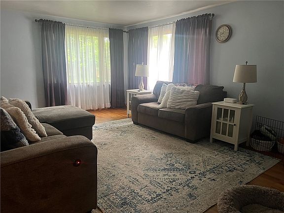 Nice solid brick house on large level lot! Spacious living room with bright corner windows. Open kitchen/dining room with large window brings lots of light! Built-in corner cabinet in dining room. Hardwood floors throughout and updated bath. Additional room in lower level currently used as a 3rd bedroom. Large cozy deck overlooking awesome back yard! Lower deck provides extra seating for all your outdoor entertaining! Tree lined driveway offers extra parking. Convenient location, close to schools, shopping, highways and more! One year home warranty included!