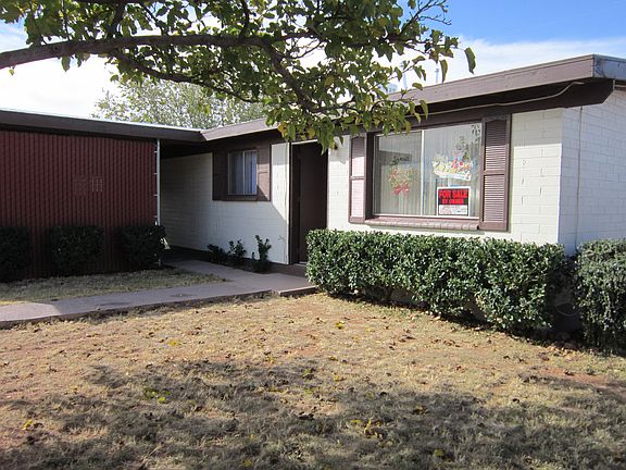 RENT TO OWN! FSBO/OWNER WILL CARRY! RENT $700 P. MO. PLUS $250 P. MO (OR MORE PER AGREEMENT) TOWARDS DOWN FOR 1 YEAR. Single Family House with 3 bedrooms & 1bath, kitchen and large dining room with a ceiling fan. About 1,000 sq. feet. Also, a small enclosed work shop with a lockable storage room, plus off-street parking. New paint insides & outsides. New roof coating. Includes washer, dryer, stove, fridge, plus all curtains and wall pictures! Carpet throughout. Large, fenced yard front and rear with mature shade trees, also a patio in rear for grilling or ?. Walking distance to schools, stores and a FREE public swimming pool. MOVE-IN READY! CALL 520-456-0253 FOR SHOWING AND LEAVE MESSAGE FOR JIMMIE. Neighborhood Description Block consists mostly of mature to older residents.