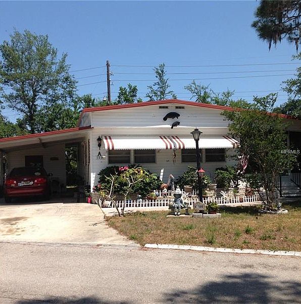 Three bedroom, one full bath and two half baths in this home located in a pet friendly community. Extra large Florida room which is glassed in. Screen lanai. Central Heat & A/C 5 years new. Bathroom updated. Utility shed has washer and dryer. Located on a quiet street - no neighbors across street. Community heated pool. Background and credit checks with $100 application per person for buying or renting. No limit on owning before you can lease. Inexpensive living - maintenance fee is $120/month includes water, sewer and trash. Own your LOT - no lot rent. All ages welcome.