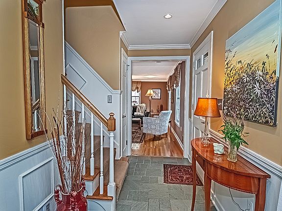 Brookside Farms beauty on a fabulous street. Covered front porch. LR w/log burning fireplace,DR w/built-in china cabinet and wainscoting off entry w/slate floor and guest closets. Updated fully equipped kitchen w/cherry cabinets,granite countertops and two breakfast bars. Breakfast room w/bay window,vaulted ceilings,built-ins and steps to deck. FMRM w/gas log brick fireplace and built-ins. 1st floor office w/built-in bookcases. 1st floor powder room. Crown moldings and hardwood floors through-out 1st floor. 2nd floor w/4 generous sized bedrooms and 2 full baths. Master bedroom w/updated bath and two large closets. Well thought out second bath w/two entrances w/a sink and toilet on each side while sharing a tub/shower area. Lots of closet space/storage. Lower level daylight GMRM w/new wall to wall,chair rail,1/2 bath,laundry room, and mud entry. Two tiered deck w/fire-pit and chairs, lower level patio & yard are perfect for entertaining. Storage room for yard supplies,bikes under deck.