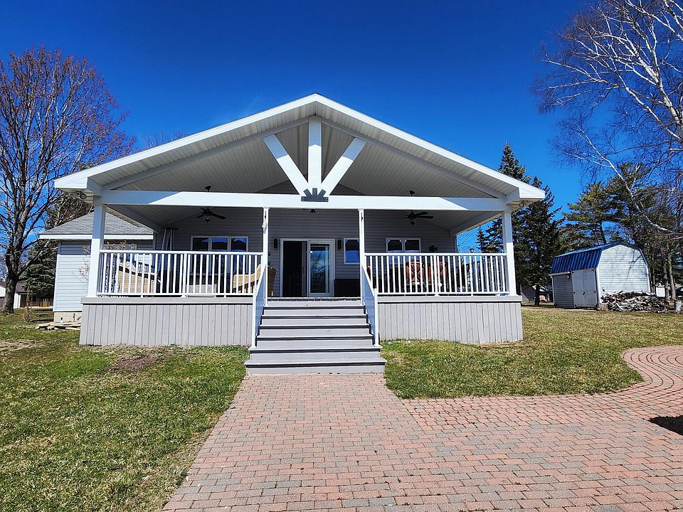 This beautiful canal front home offers an open floorplan with cathedral ceilings for a spacious feel the moment you step inside. Ideal for entertaining family and friends. Updated kitchen with granite counters, ceramic backsplash, living room and dining area all overlooking the water. Master bedroom hosts a private bathroom with 2 additional bedrooms and a 2nd bathroom with both baths beautifully tiled with a rich neutral ceramic tile. Attached 2 car garage, storage shed and 118 ft. of waterfront in the highly desirable McKinley Sandy Shore Estates. Fish right outside your door or relax and unwind on the 12 x 32' covered deck while enjoying the peaceful canal setting. Schedule your showing today before it's gone!