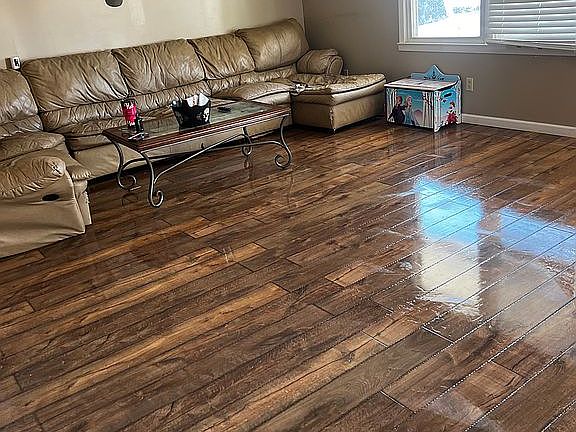 The sunroom does have floor damage seen in the pictures, the master bedroom does have its own bathroom, it has hard wood/surface floor through the house except for the bedrooms, backyard is fenced in, it has new appliances in the house bought last year, got a decent size shed in the backyard for storage.