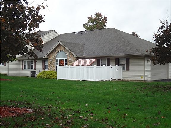 Carefree ranch luxury awaits in this lavishly upgraded richly-appointed stone/vinyl clad condo showcasing uncompromising quality upgrades and thoughtful impeccable design. Enviable located on premiere lot within the development adjacent to serene wooded privacy ideally visible from fenced patio. Striking open entertainment-friendly layout with soaring cathedraled great room underscored in the plushest new neutral carpeting sundrenched by paladian west-facing window. Transitioning freely to the open adjoining kit/dr with pretty oak cabinetry, stone-lined backsplash, granite-look variegated counters, ceramic floors, recessed lights, and new sleek appl. Gorgeous fully renovated ceramic-underscored baths with upscale tile-lined shower, solid surface counters, and ceramic accents. New high eff warranted furn/air/hwtnk, new screen drs, xtr stg/shelves, sec sys, keyless entry, electric car-ready! Turn key and commuter friendly w/immediate access to interstates, schools, shopping.