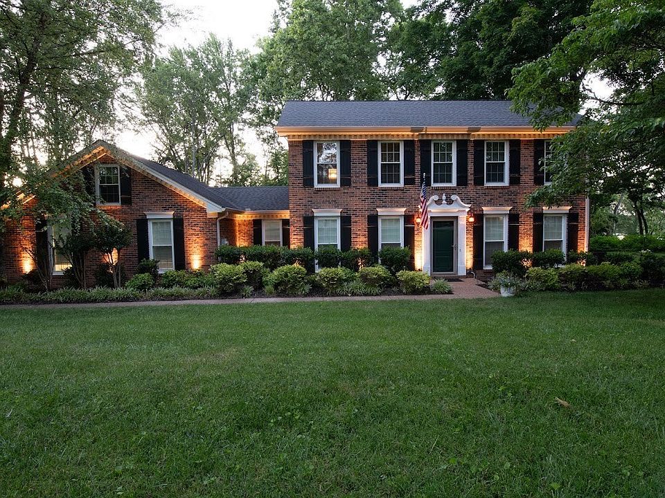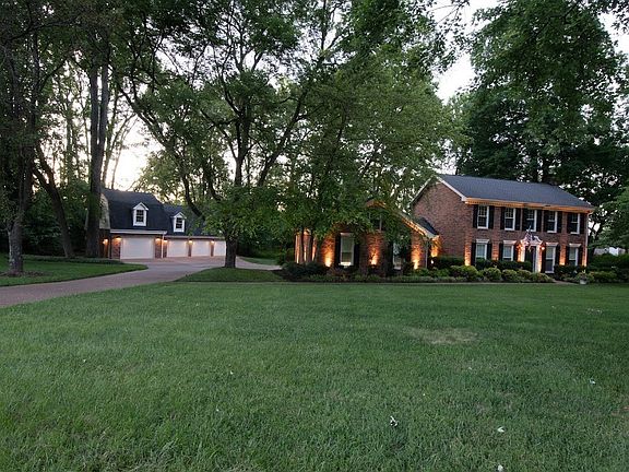 Reduced to reflect updates needed. Priced to sell. Listed at $60,000 under previous appraisal. Nestled in a well-established neighborhood, this beautiful brick home offers nearly 2 acres of serene privacy surrounded by mature trees. Inside, enjoy Pella replacement windows and a tastefully renovated kitchen featuring granite countertops and elegant tile floors. The spacious primary bedroom boasts his and hers walk-in closets for ultimate convenience. This property includes a two-car attached garage and an impressive four-car detached garage, complete with epoxy floors and electrical wiring for all your hobbies. One garage even has a mini-split unit! Ample storage above both garages presents exciting possibilities for an in-law suite, man cave, or guest quarters. With gorgeous curb appeal and meticulously maintained landscaping enhanced by ambient lighting, this home truly shines at night. Conveniently located just minutes from I-40, 386, and nearby lakeside dining at Awedaddy's Bar and Grill and Cumberland Canteen, this is a must-see!