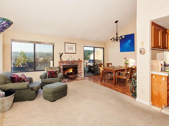 Enjoy the City Lights from this 4 bedroom 2 bath unit in desirable Scottsborough perched at the top of the development overlooking the City of Scotts Valley. Stroll to the community pool or clubhouse. This unit has a high ceilings in the living room and master suite, inside laundry, wood burning fireplace, 1 car attached garage, and an excellent commute location. 4th bedroom does not have a closet.