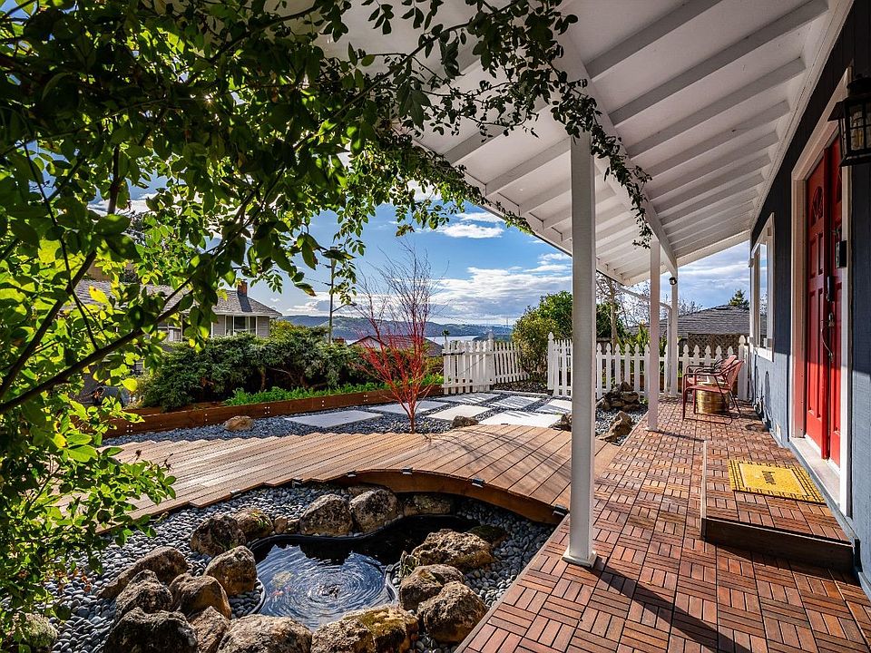 Step into this 1,853 square foot peaceful oasis. Handcrafted slate staircase leading to a wooden bridge over your own koi pond, makes you feel like you are in a tea garden. Gated vegetable garden with raised beds, 2 car garage plus large gravel spot big enough for an RV. As you step inside this updated property you will find one bedroom downstairs right off the brand new kitchen finished with top of the line appliances. The home has been freshly painted inside and out; the large front room dining room combo has a custom shiplap hearth over the fireplace. Upstairs you will find three spacious bedrooms (two with water views) and two full bathrooms. Outside is a brand new deck with the hookups to customize your perfect outdoor entertaining space. Walking distance to the Southampton Shopping Center and Southampton swim club (membership included) just down the hill, this property has everything you need to live your quintessential Benicia lifestyle.