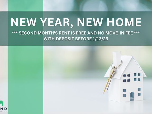 SECOND MONTH'S RENT IS FREE AND NO MOVE-IN FEE WITH DEPOSIT BEFORE 1/13/25