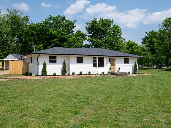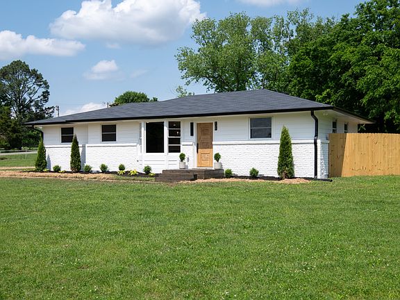 Mid-century charm meets modern living with this beautifully renovated 1950’s ranch home, centrally located 15 minutes outside of downtown Nashville. From the moment you walk through the original wood front door, you’ll know this home is special. The open concept living area boasts lots of natural light with a bay window overlooking the front yard, a new kitchen with slim shaker cabinets with pantry, open shelving, quartz counters, tile backsplash and new stainless appliances. Split floor plan provides a private primary suite with walk-in closet and new bath with tile floors and shower with frameless glass and a double vanity with quartz. Generously sized secondary bedrooms and hall bath with new tub, tile and vanity with quartz. Upgraded finishes like LED recessed lights, wide-plank hardwoods, new hardware, fresh paint, new doors, storage and more throughout. Mud/laundry room leads to rear driveway entry in fully fenced backyard with detached 480 sq.ft. garage + workshop with carport. The .71 acre corner level lot offers mature trees, plus, a new stone patio with exterior firepit and overhead string lights that’s ready for summertime entertaining. New landscaping in the front completes this move-in ready home that’s ready for it’s next owner!