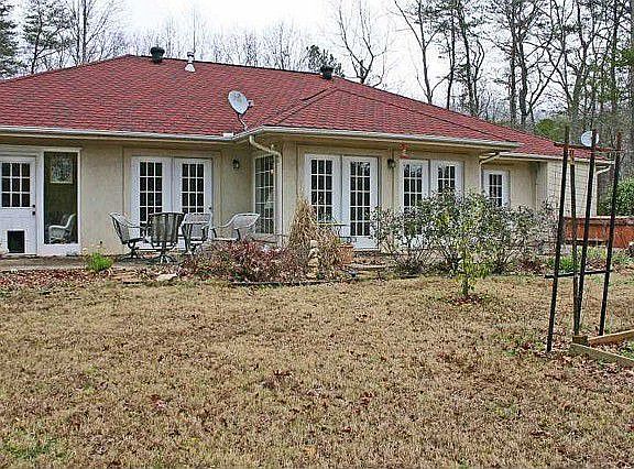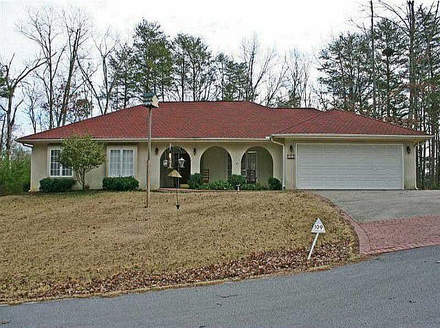 Mediterranian-style Ranch w/tile-look roof! Hardcoat stucco! Triple arches lead to covered porch with slate tile floors! Treyed great rm w/double sided fireplace; Oak granite kitchen with tumbled stone backsplash; Walls of French doors open onto sprawling rear patio which offers hot tub views of level grassy backyard w/fence woodland backdrop; Sunroom w/tile floor! Hdwd floors; Hall bath w/double vanity; Whole house generator and dual fuel heating! New Interior Paint!