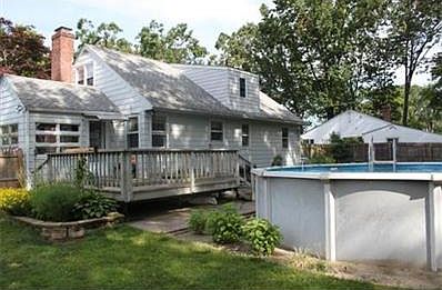 This Cape style home features many updates which includes 2 full refinished bathrooms, refinished hardwood floors through out. Newly painted Shakes, roof and windows. Also Air conditioned with a newer gas furnace(Bryant). Alarm system available. View off your deck the fenced in yard, garden area with a above ground pool for your enjoyment. Home is located right across the street from an elementary school.