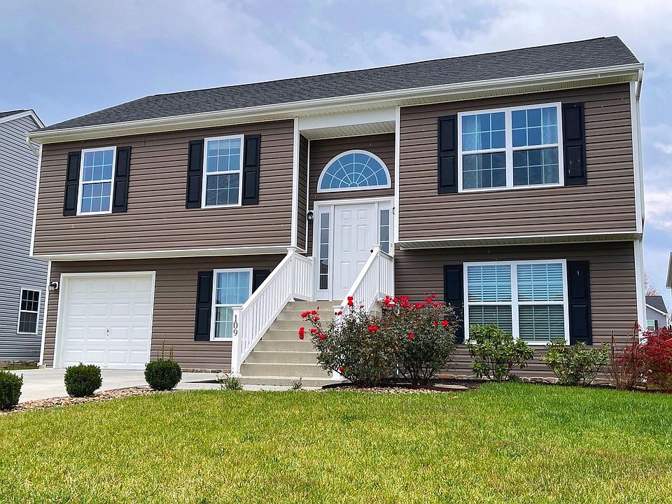 Welcome to this beautiful home on 109 Aylesbury Ln! Only 5 years old and well maintained, this home shows like new!This 5 bed 3 full bath home has so much charm and great open space! The kitchen has stainless steel appliances, large cabinets and granite countertops, hardwood floor on the main area and carpet on the bedrooms. Featuring an open floor plan, LOTS of natural light, patio, deck, and so much more! 9ft ceilings throughout the home with cathedral ceilings in the main living area make the space feel even more open. Master has a 5ft shower, great sized double vanity. Fully finished basement , 1 bathroom, 2 bedroom, and another open space for the family. Back yard (an amazing spot to hang out and entertain) is completely fenced in! Upper deck, Lower patio perfect for gatherings. This home is not only located in a great subdivision but has been maintained beautifully!