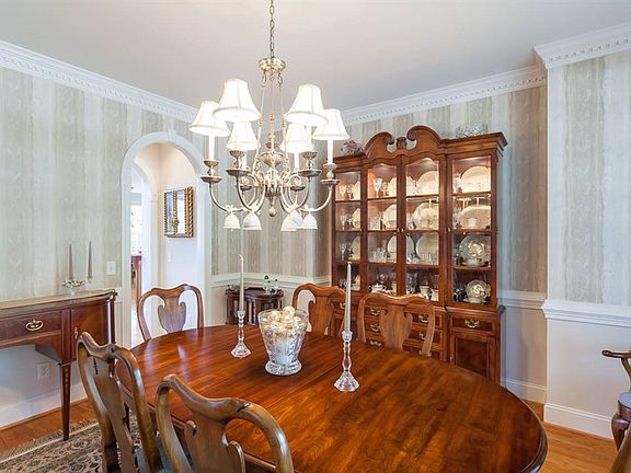 Former parade home in Weston Estates with soaring 2-story family room with gas log fireplace & windows galore! Hardwood floors throughout the 1st floor. Formal living room accented by cathedral ceilings ceilings & arched entry way. Spacious kitchen with stainless steel appliances, tile backsplash, gas cooktop & breakfast nook. First floor master has trey ceiling & private access to screened porch. Master bath with two separate vanities, whirlpool tub & double head shower and large walk in closet. Three beds upstairs, two with private baths. Large bonus with easy access to kitchen. Landscaped yard with mature hardwood trees for privacy.