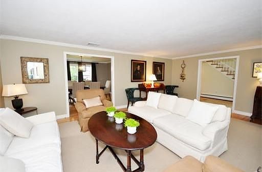 Sophistcated elegance transcends each rm of this wonderfully refreshing 9 rm Colonial. New Kit w Carrera marble counters & induction cooktop & new stainless appliances. Restful informal sitting rm & fp\'d FR w access to priv dk overlooks level, open bkyd. Inviting & nicely proportioned formal LR & DR; 1st flr office tucked away = quiet retreat or respite from family activity. Upstairs ar 4 bedrooms & 2 full baths both updated w marble counters. mudrm and great fin\'d lower level. walk to center!