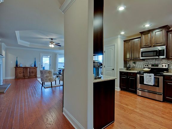 This charming full brick home offers every upgrade possible with crown molding throughout, gleaming hardwood floors, lots of custom built-in cabinets and a beautiful gas log fireplace. Kitchen offers recessed lights, stainless appliances, two large pantries and a spacious eat-in dining area. Pendant lights over the raised breakfast bar add extra seating. An isolated owner's suite has hardwood floors, trey ceiling, center chandelier, and large bathroom with custom built-in closet shelving. The back yard is fully privacy fenced with covered back patio and extended concrete pad perfect for grilling and outdoor entertainment. Nice corner lot placement in a convenient neighborhood near I-565.