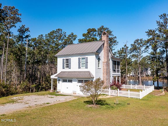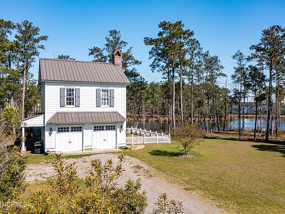 Charming carriage house nestled on a beautiful .77 acre waterfront lot on Mill Creek. Enjoy kayaking or paddleboarding right off your private viewing dock or just sit back and enjoy the stunning water views and nature at its finest. Home features granite counters, beautiful wood flooring throughout the main living space, fireplace, and two full bathrooms. The lower level offers a flex room that can be your office, workout area or guest room with it's built in Murphy bed. Homesite also has the infrastructure in place for the main home when you are ready to build while living onsite. Relax on your screened-in balcony overlooking the creek or spend time on the lower porch in your fenced yard. Perfectly located in the coveted River Dunes community, this lovely property is within walking distance to the marina, clubhouse, provisions store, café and health and fitness center. River Dunes is a planned community that emphasizes historic land and habitat preservation. It contains remnants of colonial settlements, the historic Neuse River Lighthouse and the great pine plantations. River Dunes Marina is just moments from the ICW, Pamlico Sound and Neuse River and a perfect location to enjoy the best of North Carolina's Sailing Capitol.