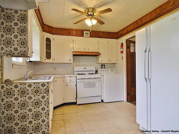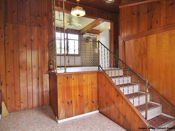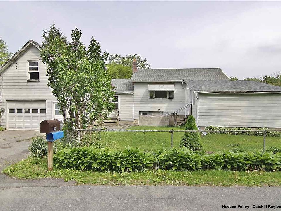 Sprawling multi-level home is located close to Uptown Kingston and NYS Thruway exit 19. Home's interior features all oak hard wood flooring and solid pine wainscoting finishes. Two bedrooms with lots of closets, third bedroom currently being used as a family room would just need a door to be considered the third bedroom. Home needs some updating but is fully functional and easily mortgage-able. Large yard is fenced. The one car garage is over-sized, there is a huge partially finished loft above offering endless possibilities.. Home is in a flood zone and would require flood insurance if mortgaged, it appears that only the on-grade basement gets water and the livable part of the house does not.
