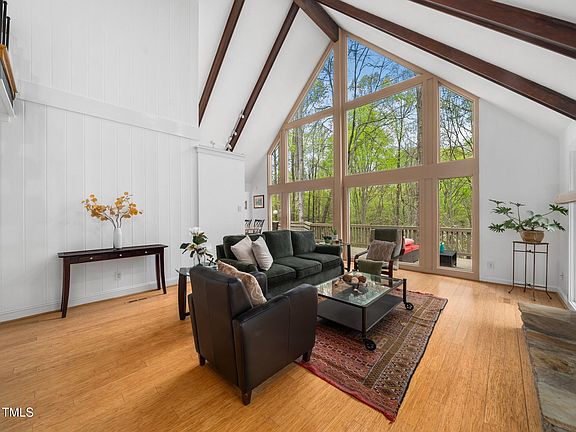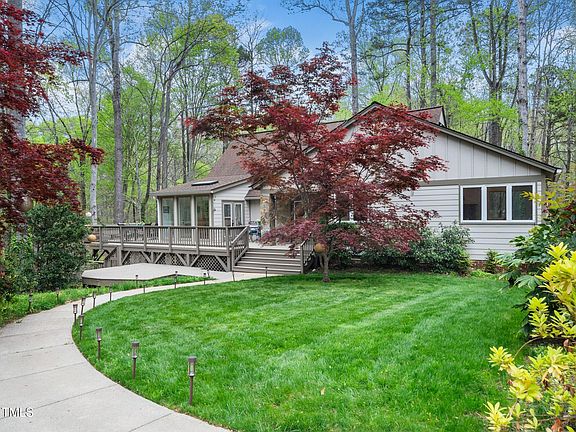 Discover this spectacular one of a kind home which is nestled on 1.39 acres of wooded privacy in desirable Cary. Expansive windows bring in stunning natural views and abundant natural light, you typically only find in the mountains. This thoughtfully designed home features a flexible floor plan —providing multiple options for home offices, recreation rooms, a fitness room, or a playroom. With 1500 sq feet over two levels of deck and distance from neighbors, this house is great for both entertaining and privacy. The property offers an additional flex room off the garage which is perfect for those wanting a private office, artist studio, or fitness room - the options are endless. The lower level provides a private large living area, with separate entrance from the lower deck, two additional flex rooms, and a full bathroom. Enjoy peace of mind with a brand-new septic tank and a reverse osmosis water filtration system. Fresh paint enhances the inviting atmosphere. With no HOA, this home offers you the freedom to make this home and property truly your own. Experience privacy, space, and convenience all in one—schedule your showing today!