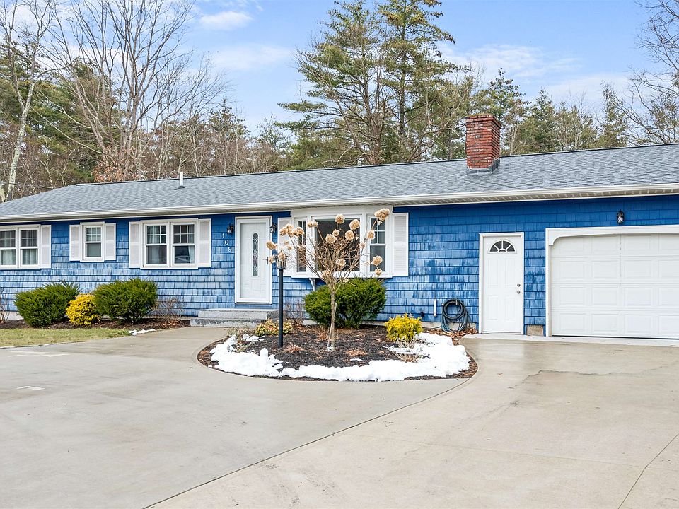 Oversized ranch-very well maintained and tastefully updated throughout! Awesome kitchen with plenty of cabinets, granite countertops, stainless steel appliances, open to cathedral ceiling family room with lots of windows and pellet stove(negotiable). Interior features include hardwood floors through out most of the house, primary bedroom has updated 3/4 bath and walk-in closet, cozy wood burning fireplace in living room, updated main bath with double sink, 3 bedroom plus an office with a closet, huge unfinished basement with woodstove, high-efficient FHA heat and central air conditioning, central vacuum, generator hook-up, updated 200-amp service, public water and private well. Exterior features cedar shakes and vinyl siding, newer architectural shingled roof, cement circular driveway, large deck overlooking private fenced-in yard, Plus a 30'x40' auxiliary building with cement floor and electricity! WOW! Don't miss this one! Open House Saturday March 30th 1:00pm-3:00pm *Outside Security Cameras are ACTIVE.