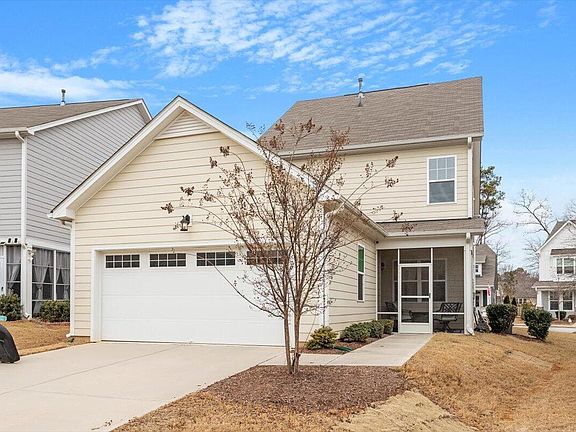Wonderful home with so much natural light in 2018 Market in Holly Springs. Covered front porch plus 2nd floor porch accessible from the primary bedroom. Main level boasts white kitchen with quartz counters, wall oven, built-in microwave and gas cooktop. Walk-in pantry and butlers pantry, too! Eating area plus additional flex area on main level. Screened porch and attached 2 car garage. Second floor has 3 bedrooms plus laundry room. Primary bedroom has walk-in closet, trey ceiling, bath with tile floor, shower and dual vanity. Community amenities include pool, clubhouse, playground and dog park.