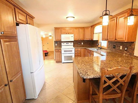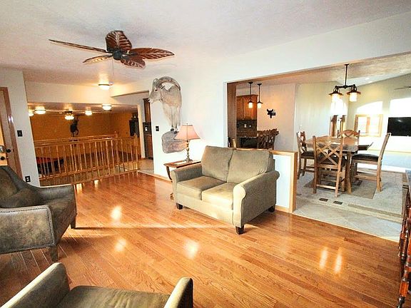 Unique, lavish and vibrant are only a few of many words to describe this one-of-a-kind home. There are three lively living rooms on the main floor-one of which is HUGE with vaulted ceilings and access to an upstairs loft playroom area as well as access to the back yard. The kitchen is entertainment friendly and it features pull out drawers in the cabinets and pantry, a breakfast bar, heated tile, and is open to the dining room (also has heated tile floors). Disappear into the exhilarating master get-a-way, which boasts vaulted ceilings, a massive closet, and a striking master en-suite, presenting a crisp tiled steam shower, precious double vanities, heated tile, and a laundry room. There are 3 additional bedrooms on the main floor, and the refreshing main floor bathroom, also equipped with double vanities and a steam shower! Rounding out the main floor is a giant game room, perfect for a pool table, hockey table, etc. Downstairs contains another family room, a storage room, and bright bathroom with laundry. The double stall garage is oversized and has a built-in golf simulator/movie theater and plenty of storage! Out back you'll find a POOL with a slide, custom landscaping, two water fountains, an exciting fireplace, and plenty of room to hangout and grill! WHOA! This house really has it all!