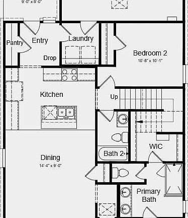 - Ceiling Fan(s), Electric Dryer Hookup, Kitchen Island, Open Floorplan, Primary Bedroom on Main, Recessed Lighting, Walk-In Closet(s)