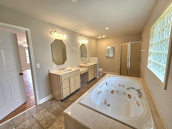 Fabulous spacious primary suite with hardwood floors, oversized closets, and a private bath.Flex room great for home office, baby's room, or fourth bedroom. Large, great room living and dining combo. Screened in party deck on the back of the home. The backyard was fenced in, the fence is still there, and the storage barn is in the back, too. Full semi-finished basement heated and cooled. Great for recreation space or party area. This house is a lot of home for the money and freshly painted, new carpets and updated flooring in the living room. The brick pattern has an attractive leaf design, which is unique.