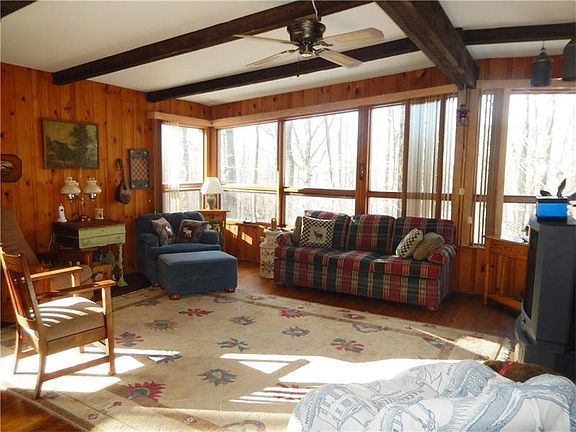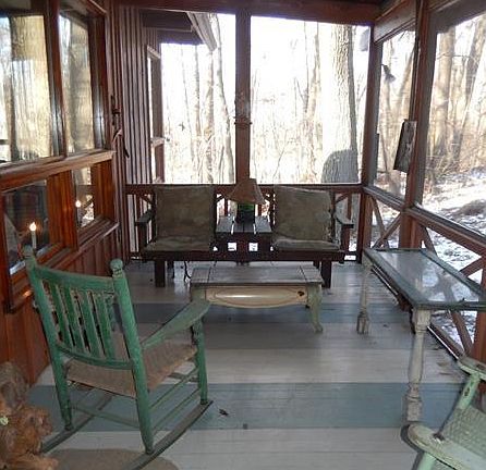 Move Right In! Hardwood floors, Vaulted ceilings, New Dishwasher, Walls of windows letting beautiful natural light flow through! Screened front porch. Large deck off back with beautiful wooded backdrop. 3 Bedroom, 1 1/2 Bath! Double lot! Huge fireplace in Living Room.