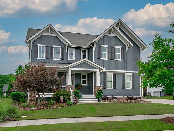 Nestled away in a tranquil corner of the sought-after 12 Oaks community, this stunning custom-crafted residence offers a rare blend of elegance, functionality, and timeless design. With 5 spacious bedrooms, 4 full bathrooms, and a generous 3-car garage, this home is a true retreat just minutes from the vibrant heart of Holly Springs. From the moment you arrive, lush, manicured landscaping and impeccable curb appeal set the tone. The inviting front porch, finished with durable Trex decking, leads you inside where rich hardwood floors flow throughout the main level. A guest suite with a full bath on the first floor offers flexibility and privacy, while artisan-level details such as craftsman-style trim, elegant crown molding, and impressive 8-foot doors add warmth and sophistication throughout. Gather around the cozy gas fireplace, flanked by custom built-ins, or unwind in the newly added three-season room. Outfitted with Eze-Breeze windows, an independent HVAC unit, and custom shades, it's a year-round haven designed for comfort and relaxation. The heart of the home, a chef-inspired kitchen is sure to impress. Featuring Energy Star stainless steel appliances, sleek quartz countertops, a farmhouse sink, Hydroviv water filtration, a walk-in pantry, and timeless white cabinetry, it's both beautiful and functional, perfect for everyday living or entertaining guests. Upstairs, the thoughtfully designed second floor includes a luxurious primary suite with a spa-like en-suite bath, two additional bedrooms, a separate en-suite guest room, laundry room, and a versatile bonus room. And for those needing even more space, the third level is a rare find. An expansive unfinished attic already framed and plumbed for a bedroom, full bath, bonus room, and storage. Finish it to suit your vision! Outside, the fenced backyard is a private oasis with mature landscaping, a stamped concrete patio, and a gas grill hookup, ideal for weekend cookouts or quiet evenings under the stars. Landscape lighting adds a magical glow after dark. All of this, plus access to the unmatched amenities of 12 Oaks: three resort-style pools, a grand clubhouse, fitness center, tennis courts, nature trails, a community garden, youth programs, pickleball courts, and a championship Jack Nicklaus-designed golf course. This is more than just a home, it's a lifestyle. Come experience the rare beauty and comfort this property has to offer.