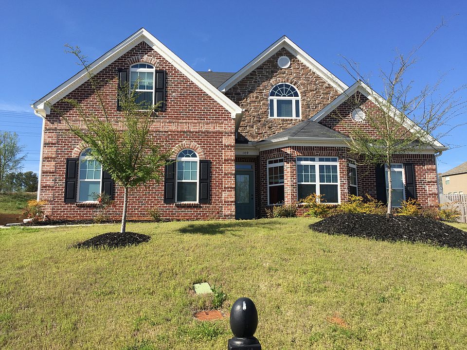 - EXTERIOR FINISH: Brick Veneer-Partial, Hardboard Siding, Stone
