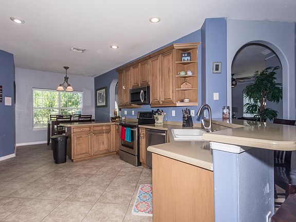 - Interior: Ceiling Crwn Molding, Washer/Dryer Hookup, Ceiling Raised, Floor Tile, Split Bedroom, Breakfast Bar, Floor Laminate, Inside Storage, Newly Painted