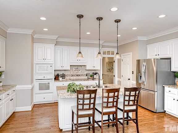 Desirable Lochmere Brick Beauty! Perfectly setback on OVER AN ACRE, resides this tastefully updated home w/ gorgeous hardwoods. Beautiful kitchen & breakfast nook have expansive windows & skylights for natural light & wonderful backyard views. An inviting family rm & large fireplace opens to a generously sized screened porch. Relax in the sizable master suite. Spacious bonus room, formal living rm or study & 3 more well sized bedrooms means room for all! Unfin walk up attic. Swim and Tennis community!